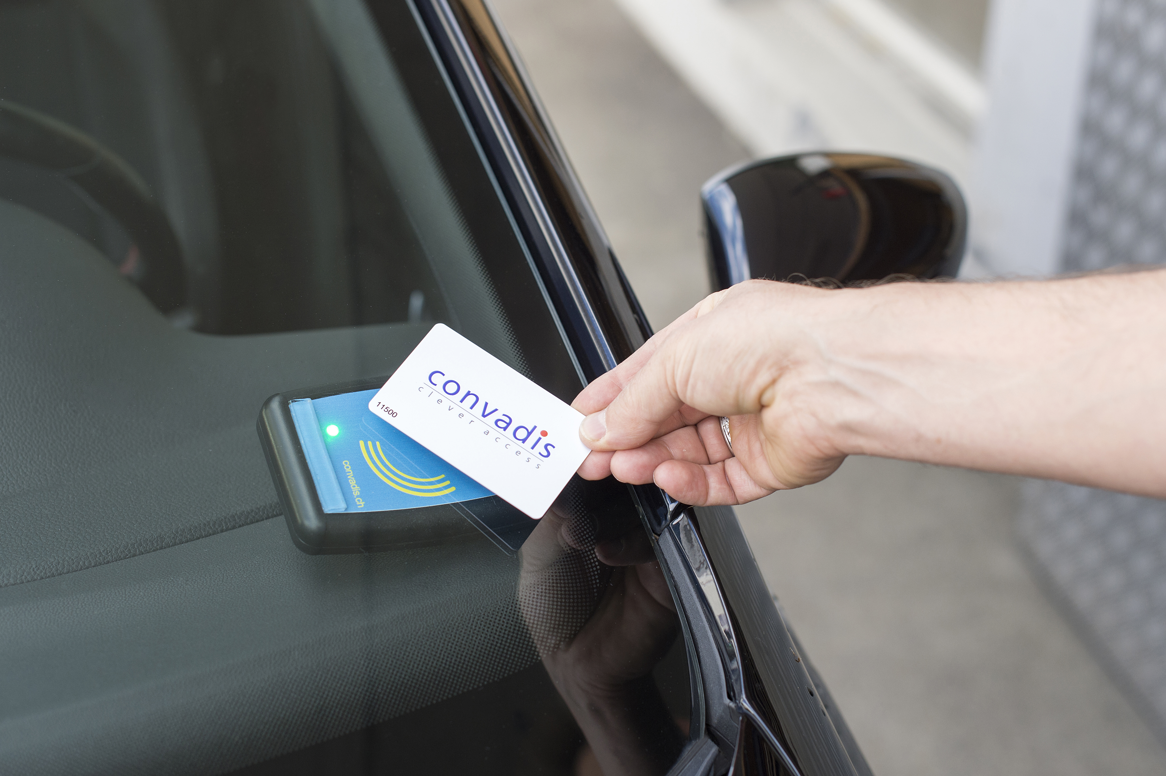 - Ist das Fahrzeug für den «Keyless» Modus (d.h. Auto hat keinen Schlüssel oder der Schlüssel wird nicht mit C-Intac überwacht) konfiguriert, kann der Nutzer das Auto während der Fahrt mit der RFID-Karte/Badge ver- und entriegeln.
